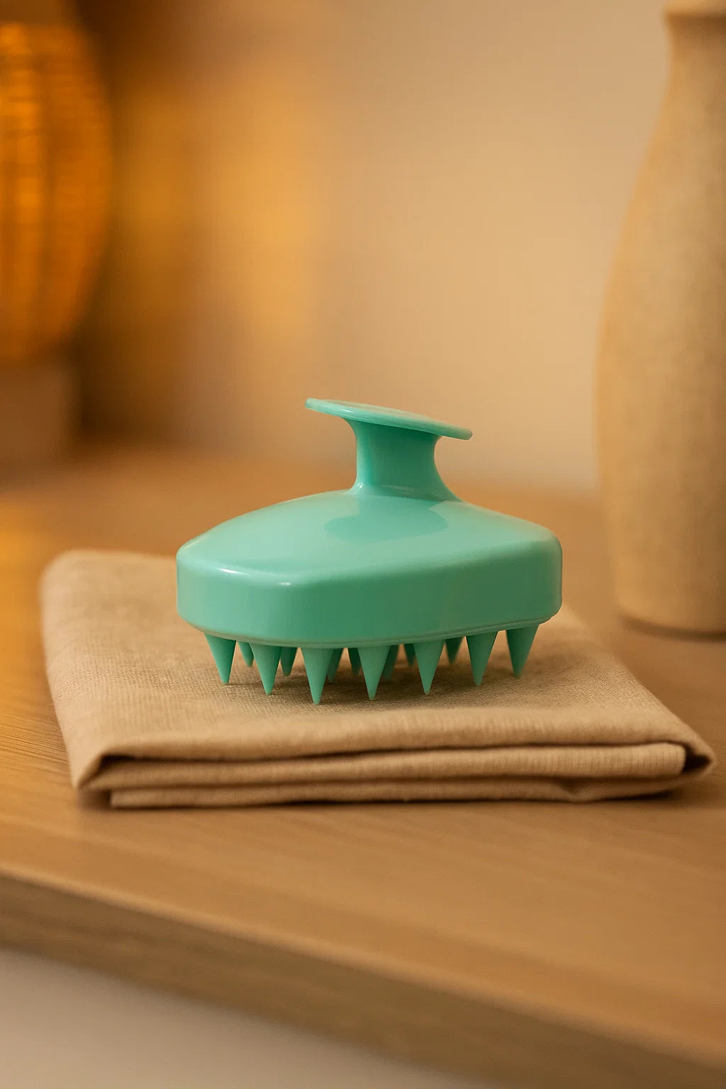 Gentle silicone scalp brush for deep clean, exfoliation, and relaxation.